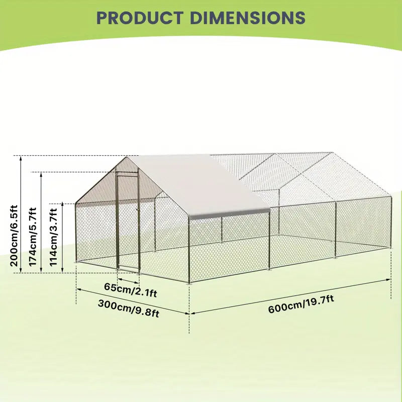 Treat your feathered friends to a secure and cozy home with our spacious and durable chicken coop. Perfect for chickens, geese, and ducks alike, this pet cage features wire sidewalls for proper airflow and a weather-resistant roof to protect your pets from the elements. The galvanized steel construction ensures long-lasting use, and the large entrance provides easy access to your pets. With a solid galvanised steel frame and a lockable system, your pets will be safe and secure day and night. Our metal hicken coop is simple to install and comes with an assembly manual, making it easy to get your pets settled in quickly.